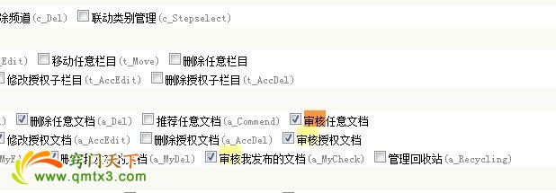 3、依次打開后臺(tái)》系統(tǒng)設(shè)置》系統(tǒng)用戶管理》用戶組管理》信息發(fā)布員》權(quán)限設(shè)定,把“審核任意文檔”“審核授權(quán)文檔”“審核我發(fā)布的文檔”勾上就可以了,如下圖所示