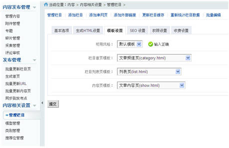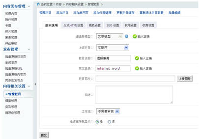 模型可綁定欄目,新建欄目時選擇模型類型, 這樣在當(dāng)前欄目下添加內(nèi)容時將繼承模型的定義。并自動加載被選模型的模版設(shè)置。如下圖所示: