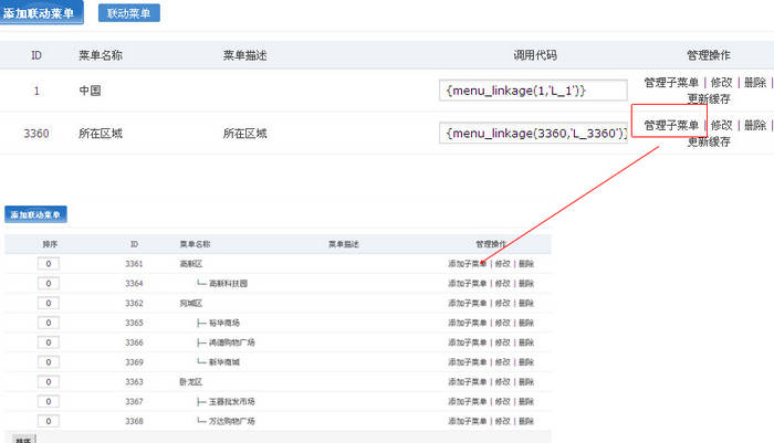 接下來為剛才添加的聯(lián)動菜單,添加菜單數(shù)據(jù),如下圖所示: