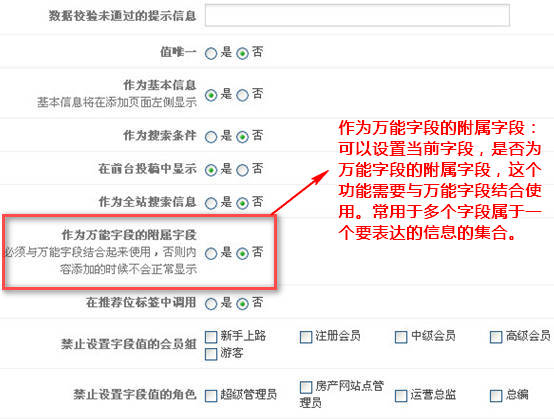 字段管理設(shè)置時有一些選項,其中有些是比較重要的設(shè)置。現(xiàn)介紹如下: