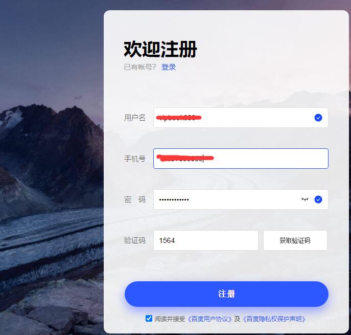 (2)進入賬戶注冊的界面,按要求進行填寫,點“注冊”。