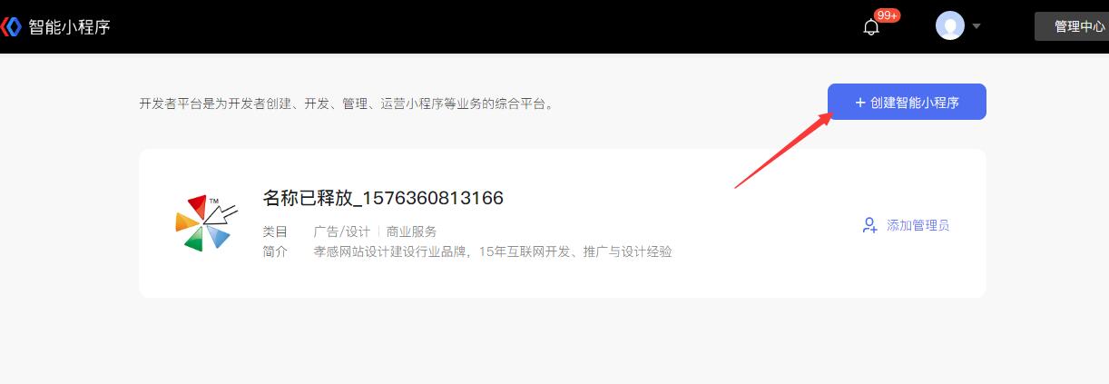 (1)進入管理中心,點擊“創(chuàng)建智能小程序”