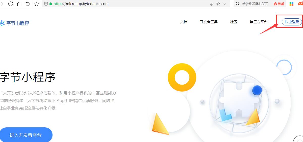 (1)登錄字節(jié)跳動小程序官網(wǎng) https://microapp.bytedance.com/ 點擊右上角的“快捷登錄”,進行帳號注冊。