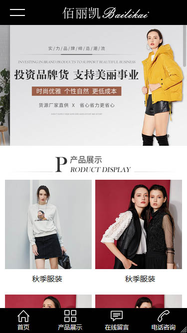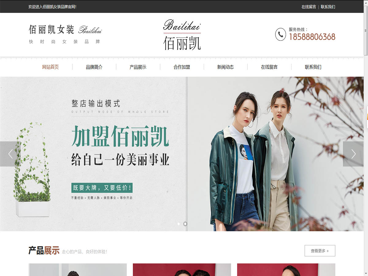 風(fēng)信網(wǎng)絡(luò)響應(yīng)建站某服裝品牌公司致力為現(xiàn)代女性提供時(shí)尚完美生活,巧妙的將各類時(shí)尚元素與東方人的甜美優(yōu)雅氣質(zhì)融合到一起,精選進(jìn)口優(yōu)質(zhì)面料,做工細(xì)膩。