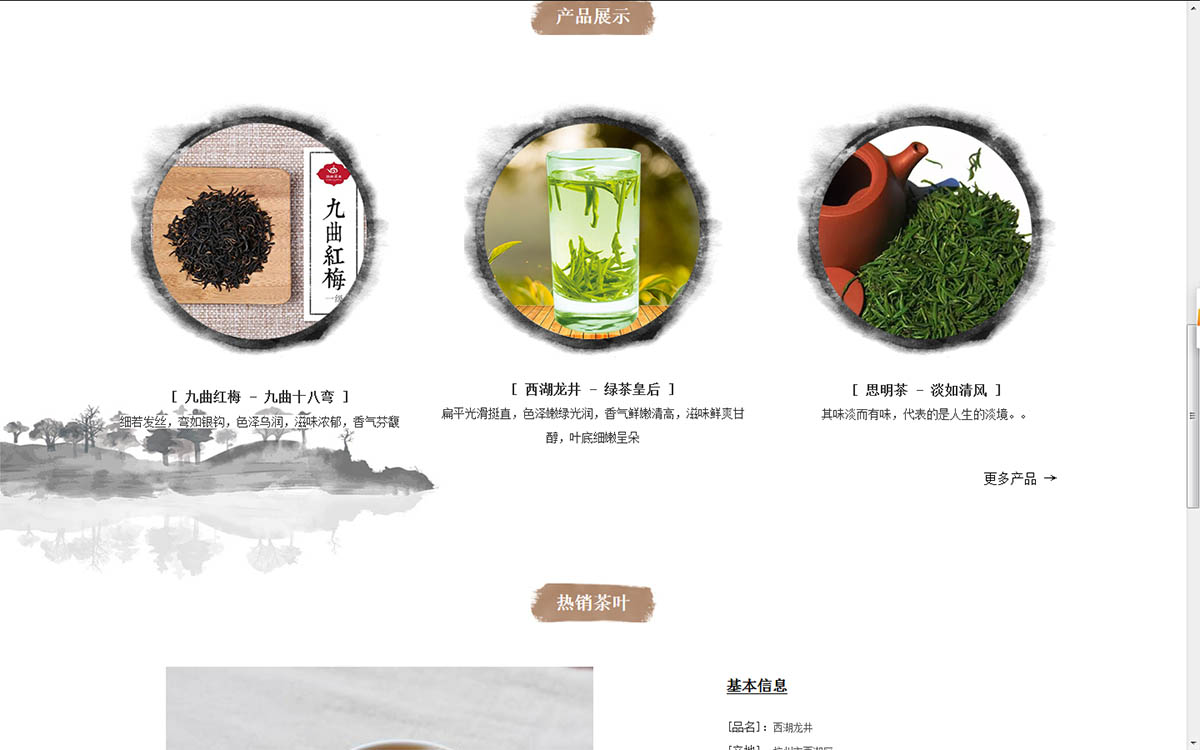 風(fēng)信網(wǎng)絡(luò)響應(yīng)式建站某茶葉有限公司,取湖埠十八棵百年古茶,采于清明,晾,揉,酵,干,筑九曲十八彎,風(fēng)靡于十里鄉(xiāng)間。今塑其形,品其味,傳其神,宣其文之于天下,是謂銅鑒堂。